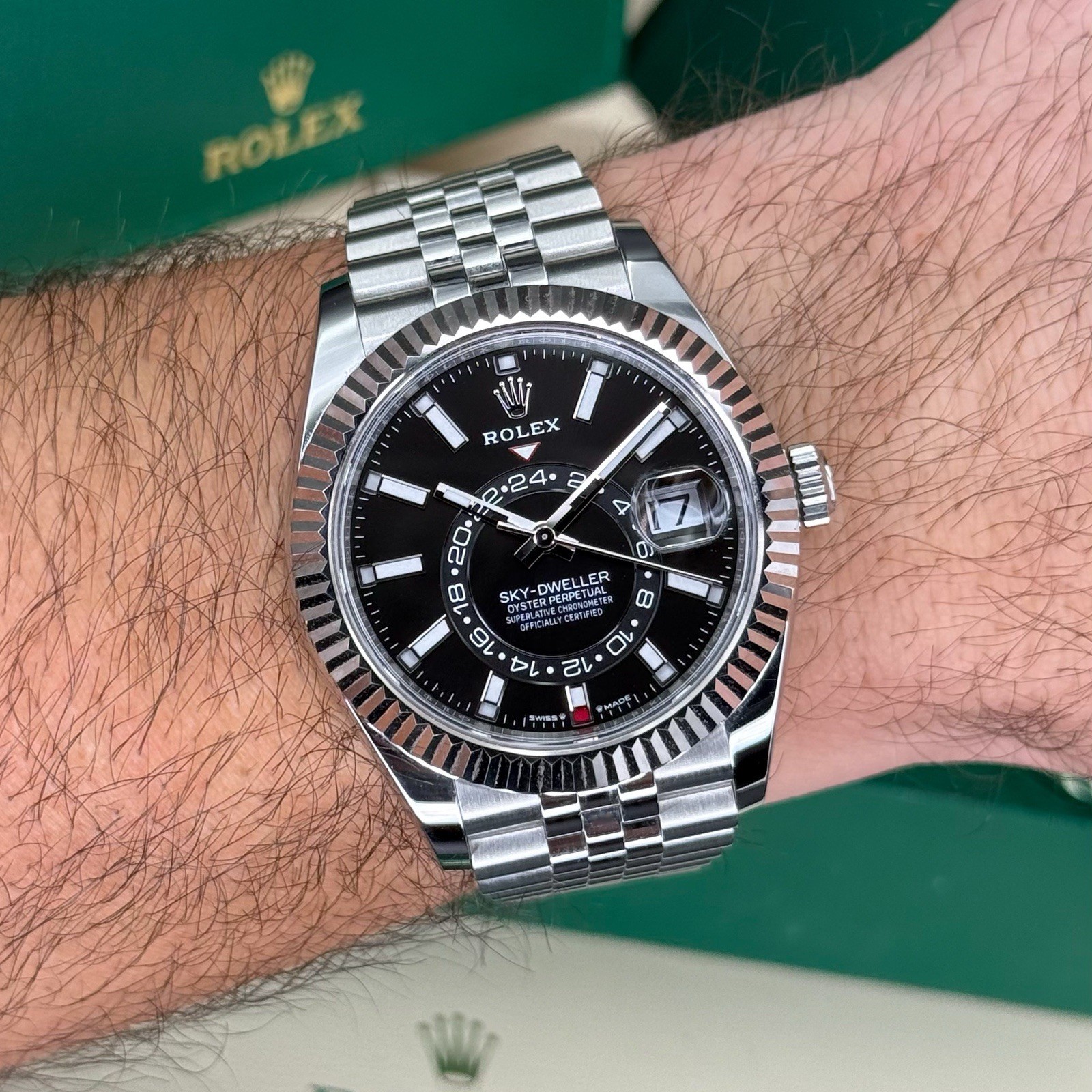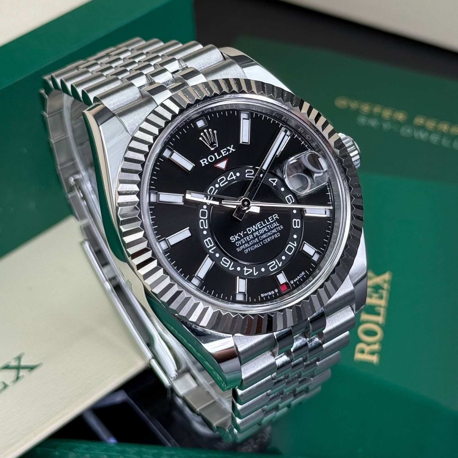 Available is the Rolex Skydweller on Jubilee