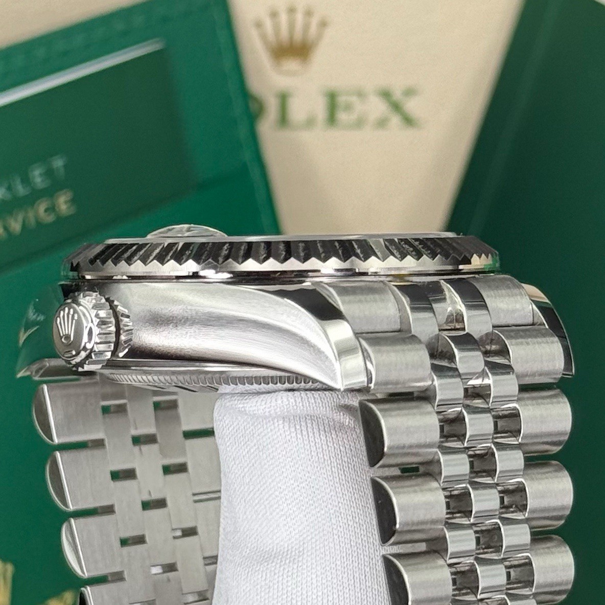 It’s not just all show either. If you’ve never seen how the white gold Fluted Bezel controls multiple time zones, days, dates, and even months stay tuned for the video to see how the most complicated watch The Crown makes functions